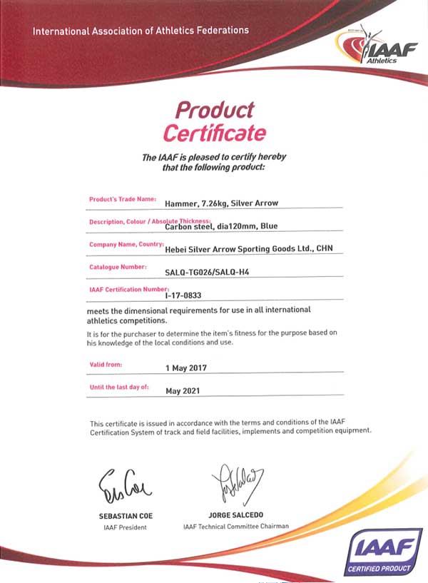 | Product Name: | Best quality carbon steel hammer throwing 3kg,4kg,5kg ,6kg,7.26kg | Brand: | Silver Arrow Brand |